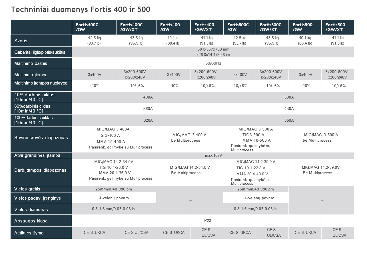 Naujosios Fortis serijos dizainas aiškiai orientuotas į ergonomiką. Korpuse ir vielos padavimo įrenginyje integruotos pakėlimo rankenos leidžia juos lengvai perkelti j kitą vietą. Skyreliai priemonių laikymui suteikia pakankamai erdvės viskam, kas turi būti lengvai pasiekiama.